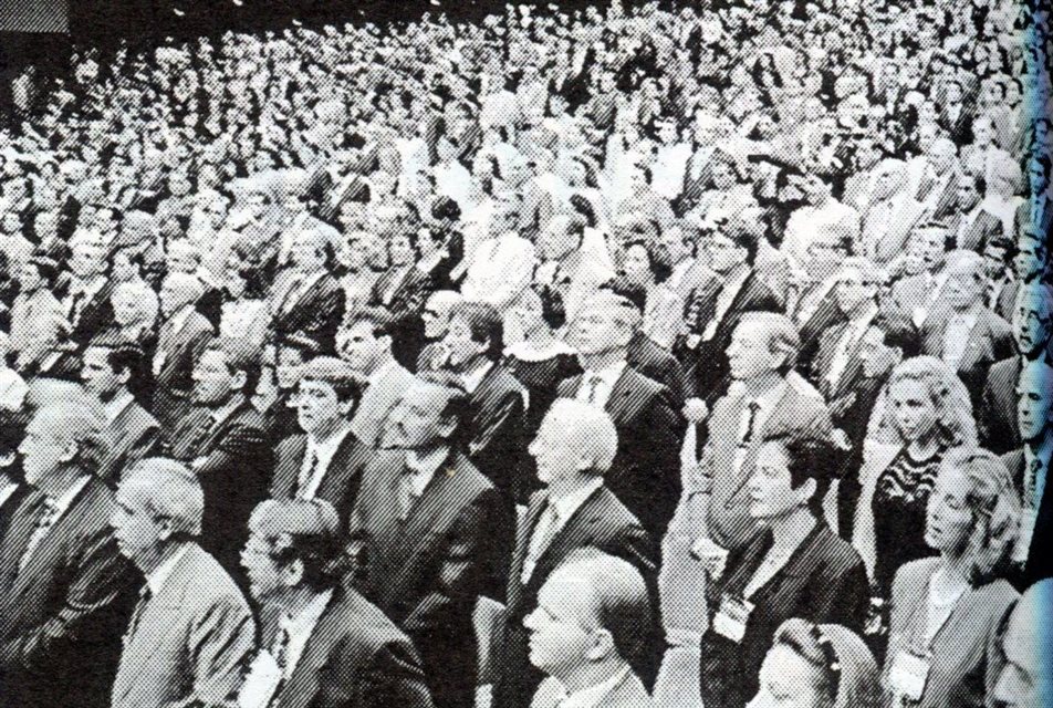 Salvador, 1991: Na área do Rio de Janeiro, o estande de hotelaria estava bastante movimentado. Todos vestiram a camisa do movimento "O Rio é de Vocês". Na foto aparecem Nilo Felix, idealizador do movimento, da Frade Hotéis, Julio Cesar Marins e Vania Leite, ambos da rede Luxor, Stella Pacheco, do Copacabana Palace, Orlando Giglio, do Meridien Copa, e Mauro Andrade, do Hotel Elias C