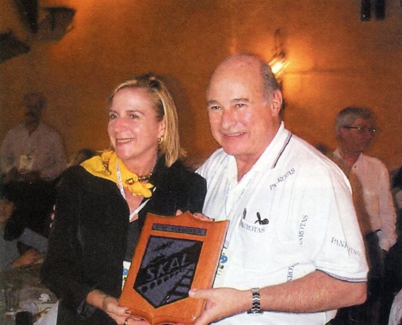 1999, em Curitiba: A secretária de Turismo do Ceará, Anya Ribeiro, recebe de Guillermo Alcorta, presidente do grupo PANROTAS e diretor de patrimônio do SKAL São Paulo, uma placa do clube. Anya, que também é skalega, assume a presidência da entidade na gestão 2000