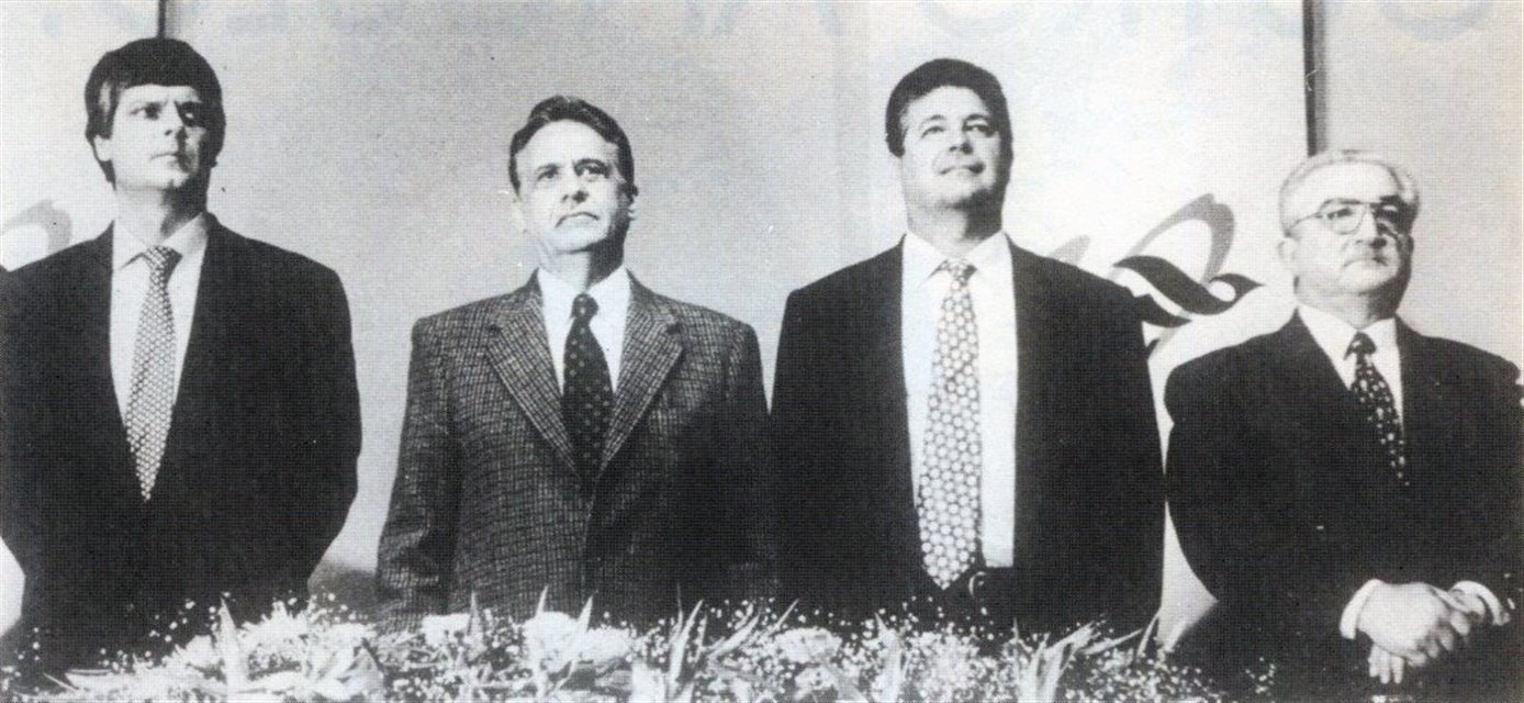 1993, na abertura da feira da Abav em Foz do Iguaçu: Caio Luiz de Carvalho, Fernando Henrique Cardoso, Roberto Requião e Tasso Gadzanis