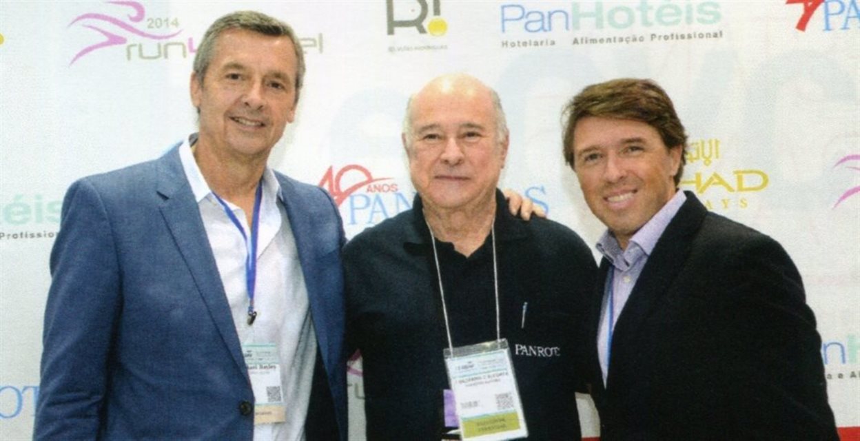 2003, Rio de Janeiro: Renê Hermann, da Costa, entre Guilherme Paulus e Valter Patriani, da CVC. Eles anunciavam que a temporada de cruzeiros já estava 50% vendida