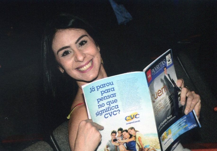 São Paulo, 2014: A diretora de Marketing do Ministério do Turismo, Luciana Fernandes, com o número 1 do Suplemento Diário PANROTAS na Abav