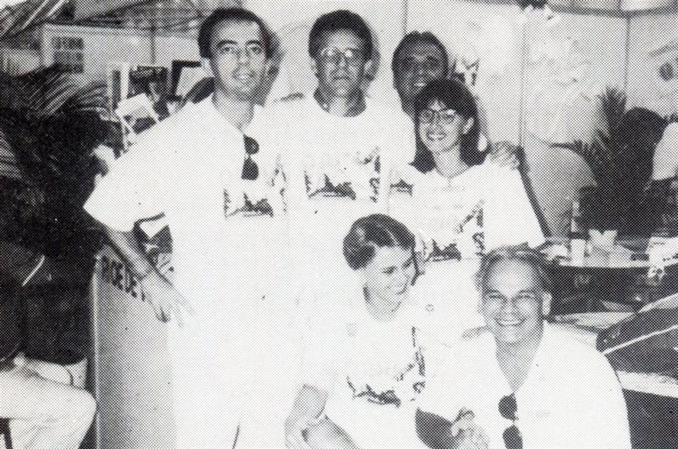 1990, Porto Alegre: J.F Ornelas (CVC), Umberto Aguilar (Marsans), Guilherme Paulus e Isabel Campesatto (CVC), na festa do Rio Grande