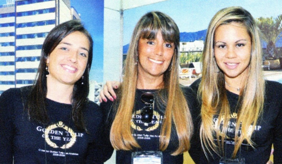 2001: No Pavilhão dos Estado Unidos, o encontro de Luiz Moura, da TIA, Magda Nassar, da Soft Travel, e Olga Arima, da Designer