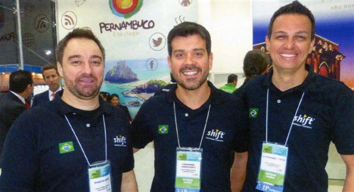 Renato Kiste, Fernando Cavalcanti e Alexandre Pinto, da Shift Mobilidade Corporativa, na Abav Expo de 2013, em São Paulo
