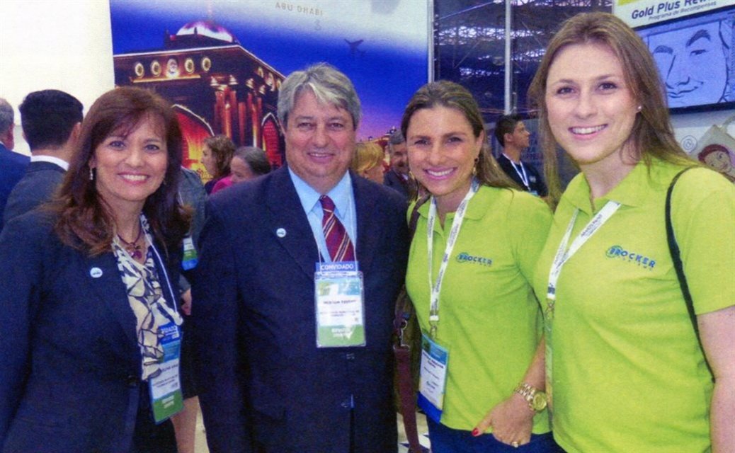 Em 2013, São Paulo: A secretária de Turismo de Gramado, Rosa Helena Volk, e o prefeito da cidade gaúcha, Nestor Tissot, com as diretoras da Brocker Turismo, Any Brocker Boeira e Luiza Brocker Boeira