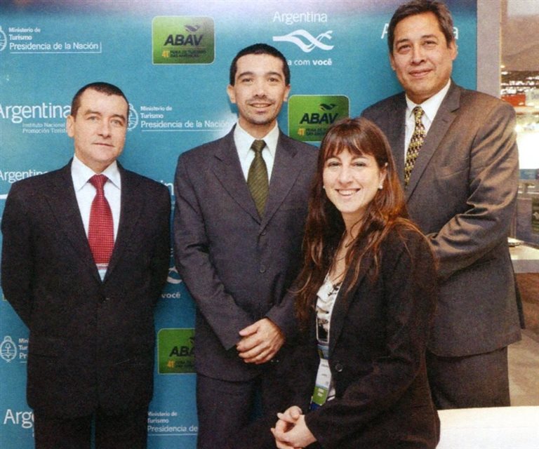Estande da Aerolíneas Argentinas, em São Paulo, ano 2013: Ivan Blanco Cadahia, Ariel Rodriguez, Gisela Marino e Jaime Rios
