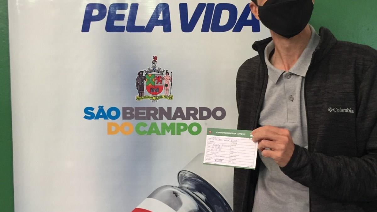 O Cleiton Pires, do departamento de Peregrinações da ATM Travel, foi imunizado com a vacina da Janssen, de dose única.