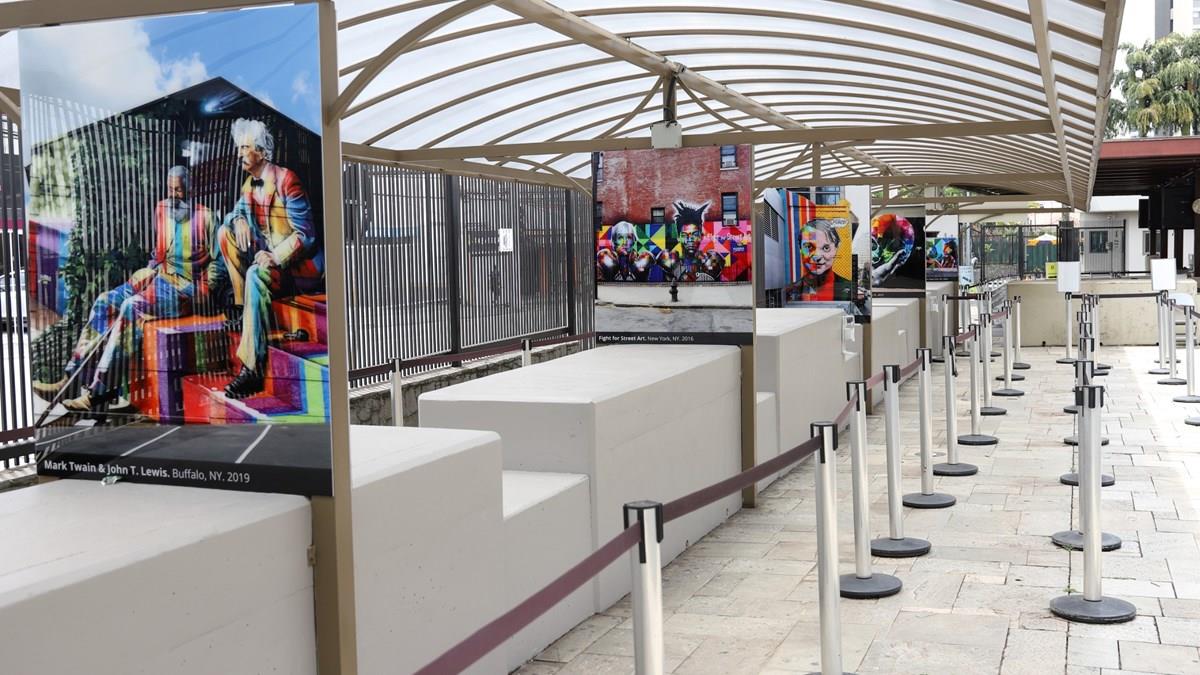 O Consulado dos Estados Unidos em São Paulo acaba de inaugurar uma mostra permanente com 22 painéis de Eduardo Kobra, que reproduzem murais do conhecido artista urbano brasileiro nos EUA, país onde ele tem 50 obras, o maior número depois do Brasil. A mostra já pode ser conferida por solicitantes de visto na cidade e faz parte das celebrações pelo bicentenário das relações diplomáticas Brasil-EUA.