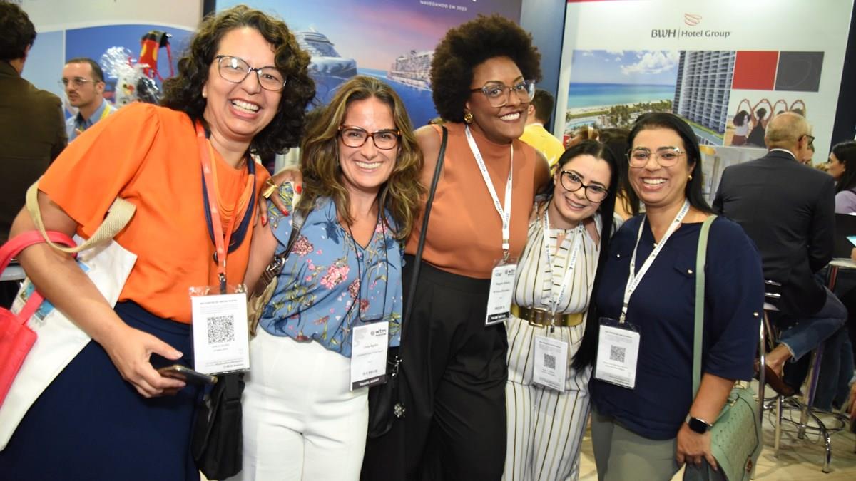 Carla Caldas, da Longe e Perto, Livia Aguiar, da Livia Assessoria em Viagens, Rogéria Pinheiro, da RP Travel Education, Fernanda Ferreira, da Livre Para Voar Viagens, e Ariane Costa, da Livre Para Voar Viagens