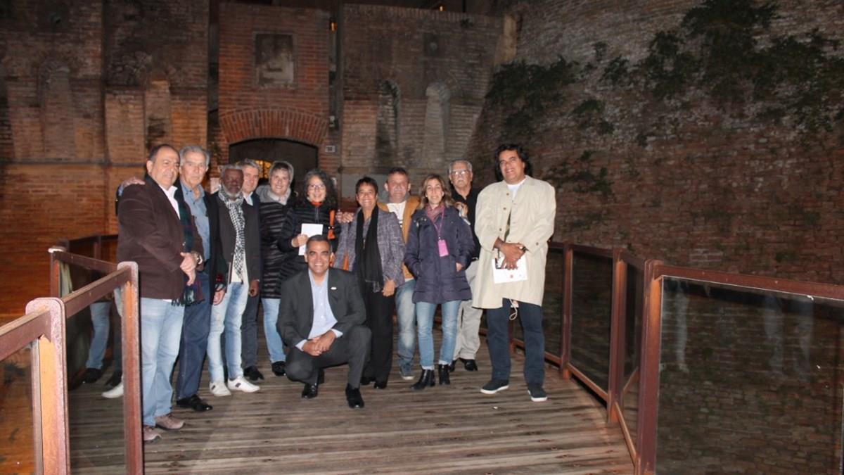 Geraldo Rocha, da Abav Nacional, Afrânio Lages, da Abav Alagoas, Jansen Santos, da Abav Maranhão, Erik Lanzoni, da IF Imola Faenza, Fernada Longobardo, da Enit Brasil, Paola Bolognesi, guia turística da região, Bruno Mesquita, da Abav Paraíba, Cristina Fritsch, da Abav Rio de Janeiro, Jorge Leite, da Abav Piauí, Elena, da Rocca de Dozza, João Avila, da Abav Sergipe, e Marcos Freitas, da Abav Pernambuco