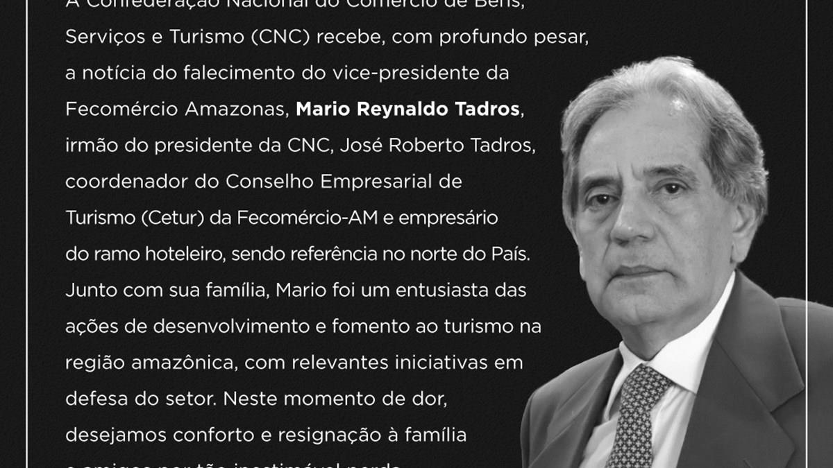 A Fecomercio-AM e a CNC lamentaram a morte de Mario Tadros, "um entusiasta das ações de desenvolvimento e fomentoao Turismo na região amazônica, com relevantes iniciativas em defesa do setor".