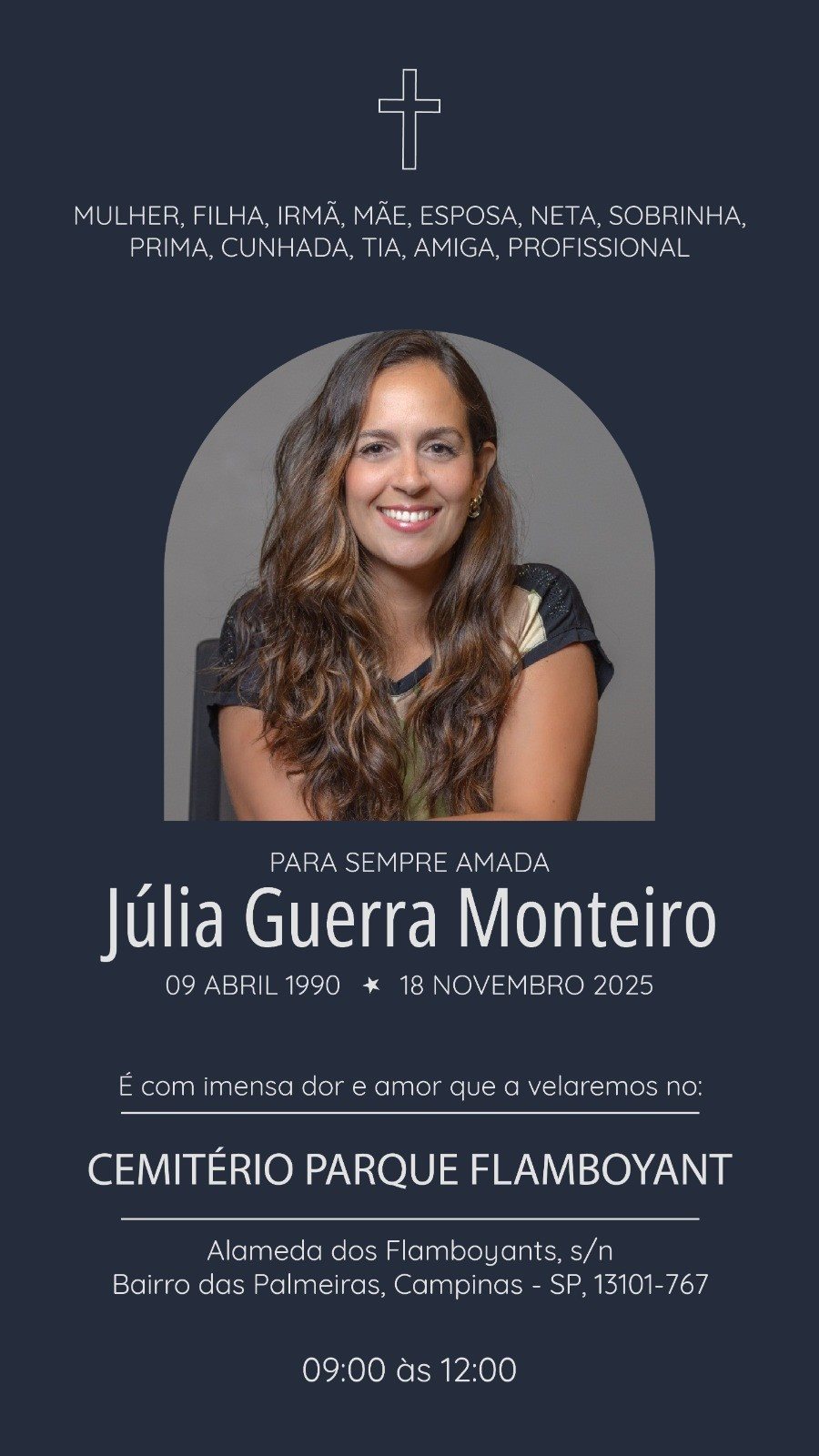 O velório de Júlia Guerra será na quinta-feira (20), em Campinas. Veja as informações: