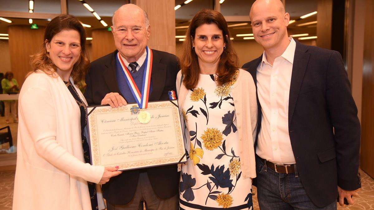 Os três filhos de Guillermo Alcorta, Maria Camilla, José Guilherme e Marianna, adornaram o pai com as medalhas, em cerimônia realizada no Fairmont Copacabana, onde também estiveram proeminentes figuras do Turismo do Rio de Janeiro e do Brasil.