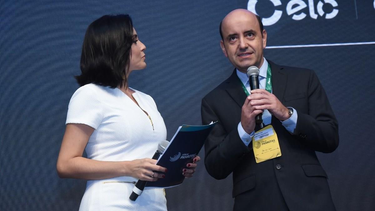 A jornalista e mestre de cerimônias, Izabella Camargo, com o CEO do Grupo Royal Palm, Antonio Dias