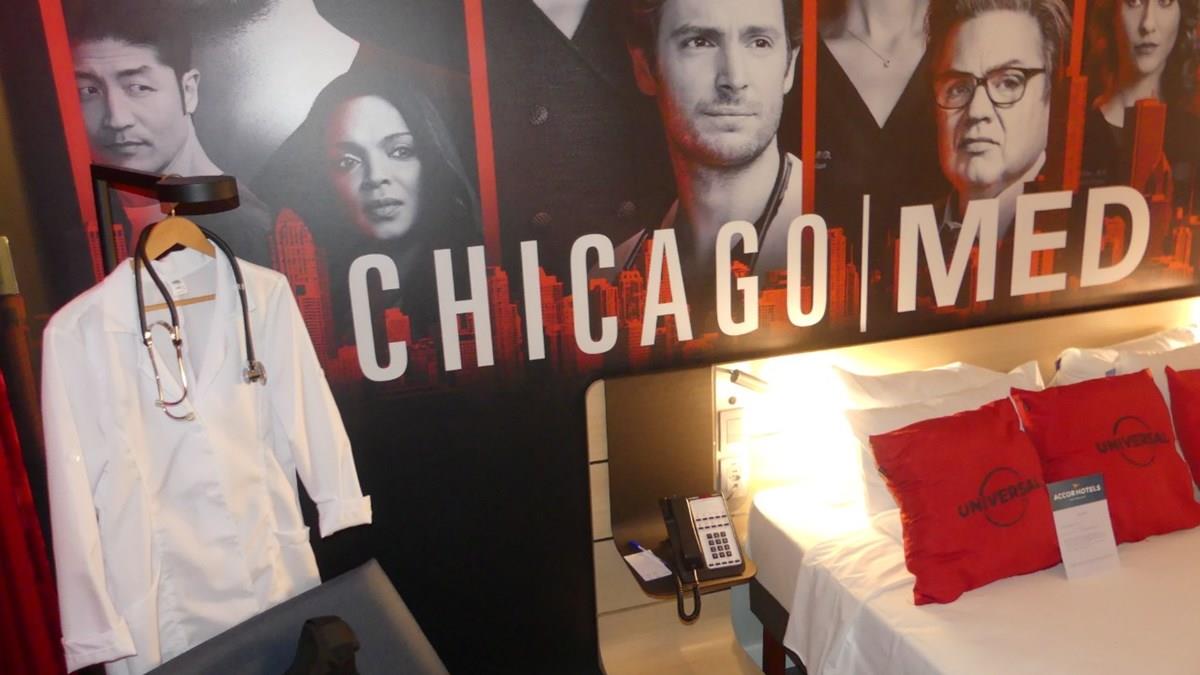 A imersão já começa pela porta do quarto 656, que chama atenção no corredor para os três seriados da franquia: Chicago Fire, Chicago P.D. e Chicago Med. As paredes são adesivadas com os rostos dos principais personagens e dá até para se vestir como eles, já que há peças de roupa de médico, com jaleco e estetoscópio, e até capacete de bombeiro para a caracterização.