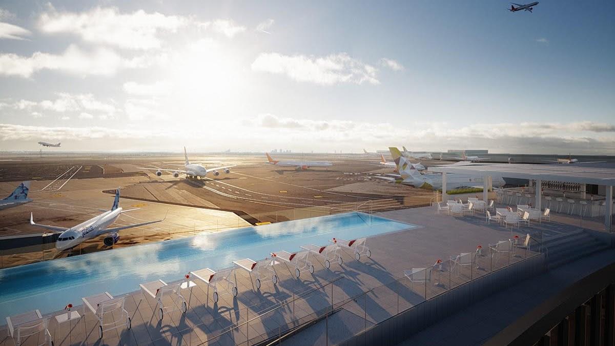 A piscina do TWA Hotel tem uma vista espetacular