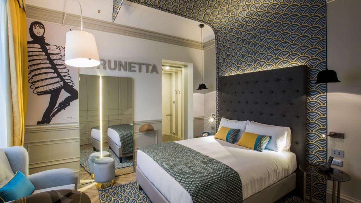Em todas as acomodações as estampas arrojadas e cores decoram as paredes e apresentam obras de arte e esboços de Biki, um dos nomes do cenário da moda de Milão nos anos 30, 40 e 50. As mesas de cabeceira, abajures e mesas de máquinas de costura fazem parte do design.