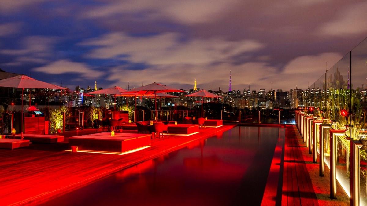 O deque da piscina também passou por mudanças. Um longo balcão, vindo de dentro para fora do bar, acomoda mais convidados. Os degraus foram substituídos por uma rampa de acesso, convidando a todos para contemplarem a vista de São Paulo.