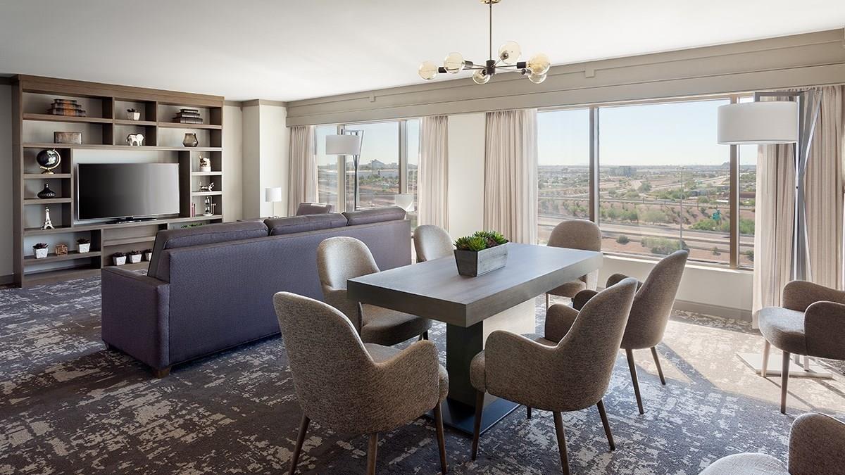 Cinco minutos distante do aeroporto internacional de Phoenix, no Arizona (EUA), o Phoenix Airport Marriott teve a primeira fase das suas reformas de renovação e modernização concluídas nesta quarta-feira (28). Agora, os 347 quartos do hotel, incluindo duas suítes presidenciais, estão de cara nova.