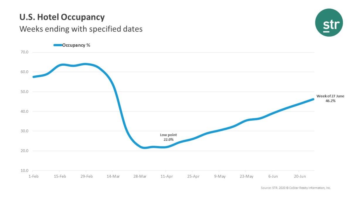 De 21 a 27 de junho, ocupação total teve variação percentual de 46,2%, em comparação com período em 2019