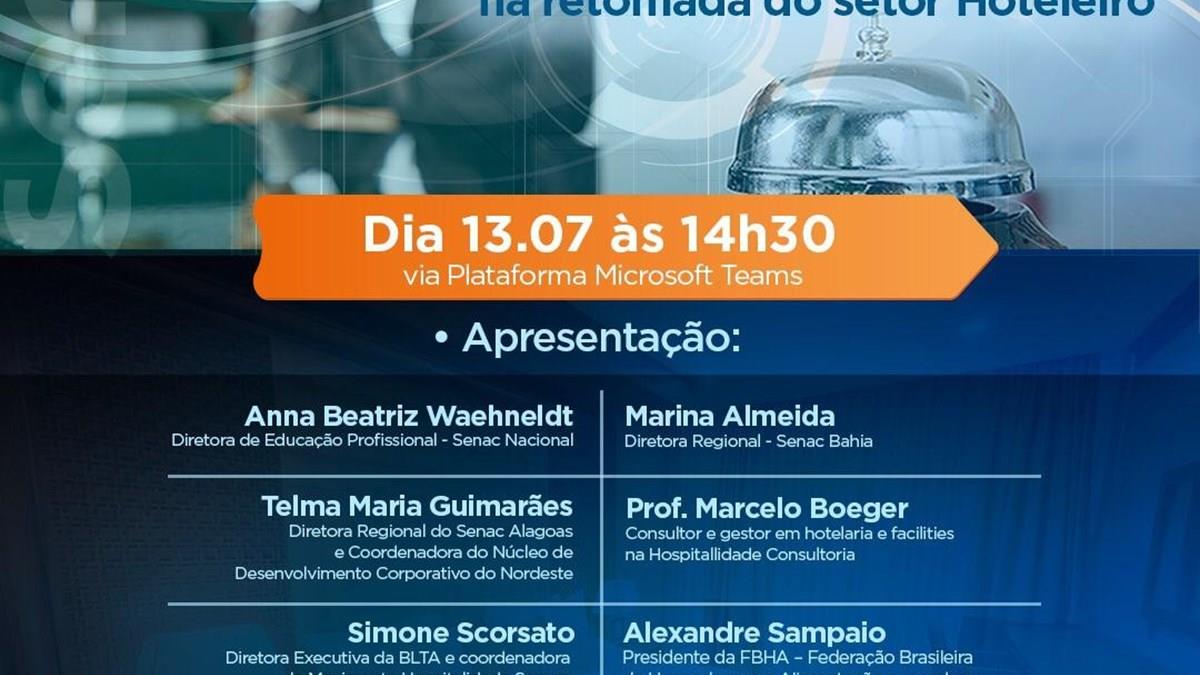 Para apoiar a região Nordeste e o Estado do Espírito Santo na retomada do setor hoteleiro, o Senac irá promover um encontro on-line hoje (13), às 14h30. Além de diretores da entidade, representantes do Núcleo de Desenvolvimento Corporativo do Nordeste e o presidente da Federação Brasileira de Hospedagem e Alimentação, Alexandre Sampaio, também participarão da conferência. Será lançado programa exclusivo para apoiar o setor hoteleiro desses destinos.