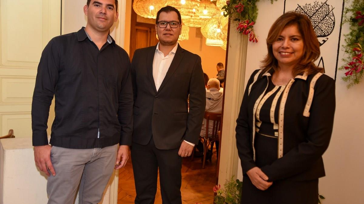 O gerente de Vendas da área de Luxo do Grupo XCaret, Lester Romero, ao lado de Gabriel López e Diana Pomar, que representam o hotel para o mercado brasileiro
