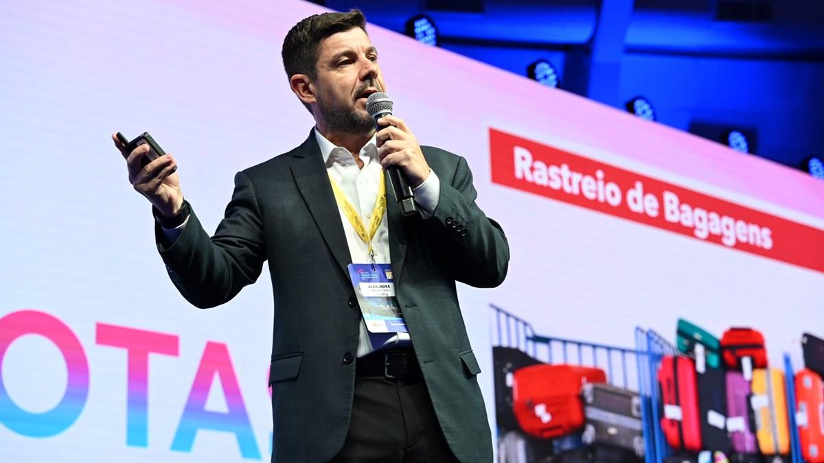 Country manager reforçou serviços da empresa, que incluem rastreio de bagagem e sala vip, no palco