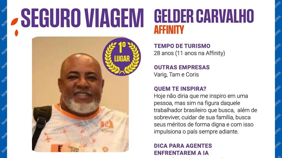 Com 28 anos de Turismo e passagens por Varig, Tam e Coris, além dos últimos 11 anos na Affinity, Gelder está na memória, no conceito, no respeito do agente de viagens e serve de inspiração para outros profissionais no setor.