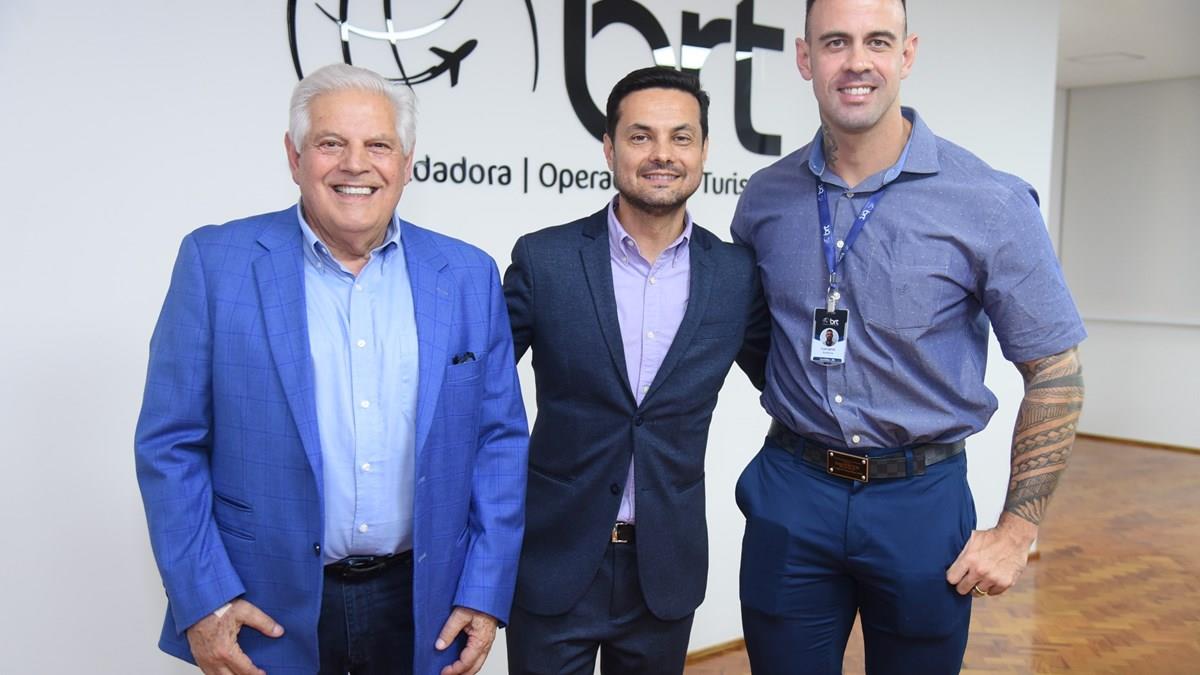 Os diretores e sócios do Grupo BRT, Eraldo Palmerini e seu filho, Luciano Palmerini, receberam fornecedores hoje em São Paulo, na inauguração da nova sede da empresa na capital paulista. Com 750 metros quadrados e cerca de 30 colaboradores, a nova sede da BRT São Paulo, no centro da cidade, é símbolo do bom momento do grupo. Segundo Eraldo Palmerini, as decisões tomadas na pandemia, de não fechar bases, e os investimentos em pessoas, tecnologia e no relacionamento com os agentes de viagens foram acertados e já dão frutos.