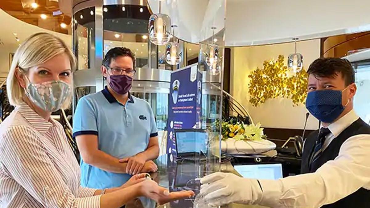 Nas excursões, os turistas terão de usar aparelhos de som individual para ouvir os guias e assim manter o distanciamento social. Estações com produto para higienização das mãos também estão disponíveis por toda a embarcação, garante a companhia.