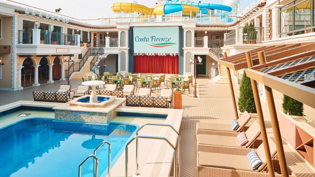 Sim, o Costa Firenze é dedicado a uma das mais belas regiões da Itália, Florença, a maior cidade da Toscana, um destino onde a vida ao ar livre é celebrada. Não à toa, este é um dos navios da frota da Costa Cruzeiros com a maior oferta de espaços e atrativos externos para seus hóspedes, para relaxarem e se divertirem em bares, lounges, festas e brincadeiras. Todos os restaurantes têm ao menos uma parte da esplanada aberta para o mar.