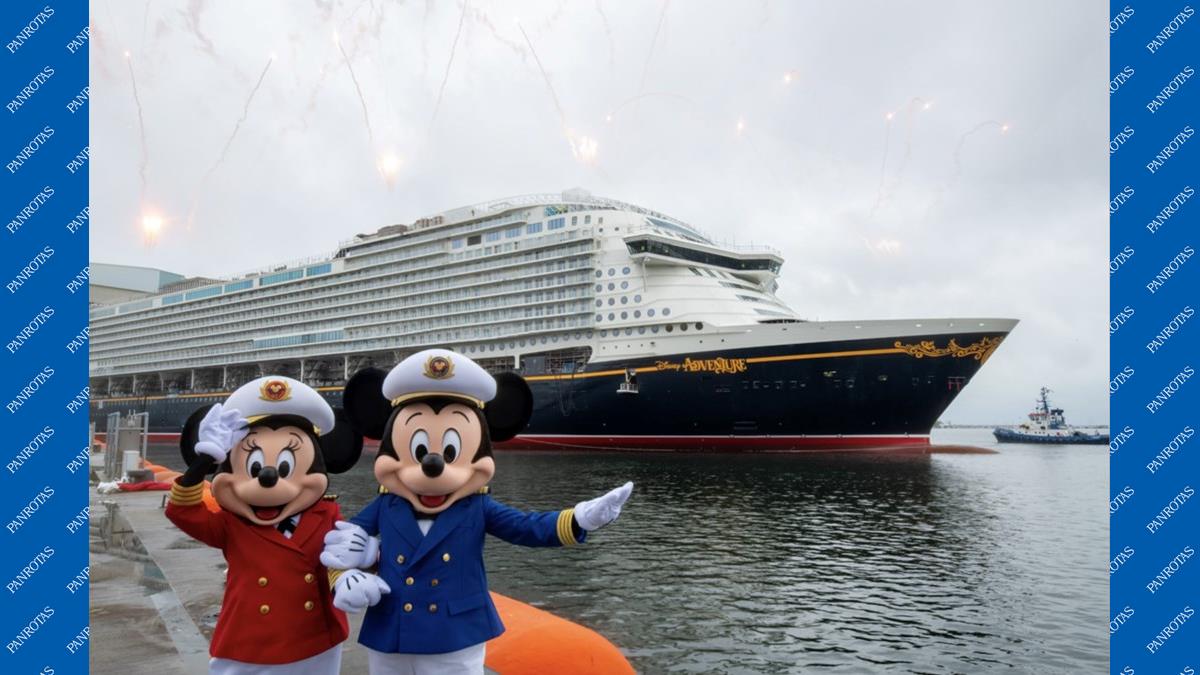 Disney Adventure, novo navio da Disney Cruise Line, toca na água pela primeira vez