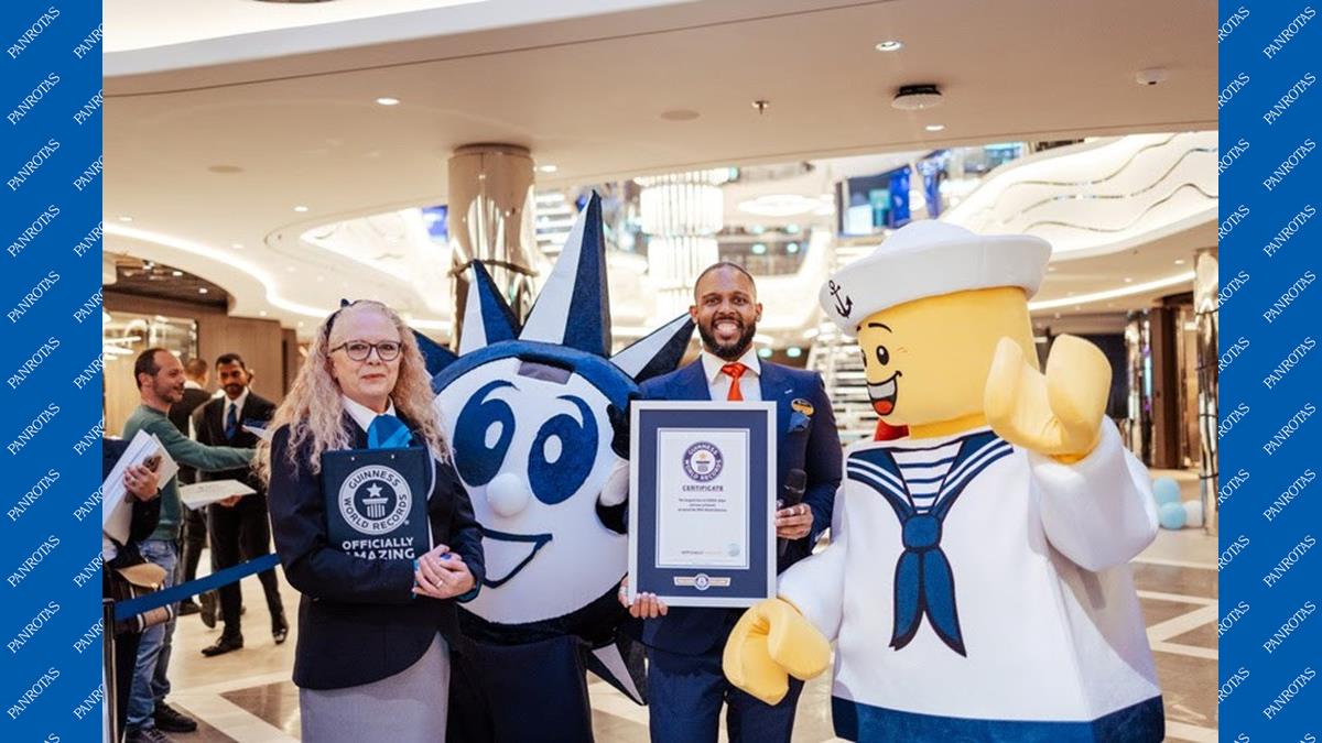 A MSC Cruzeiros entrou oficialmente para o livro do Guinness com a tripulação a bordo de seu mais novo navio, o MSC World America, estabelecendo um novo recorde para a maior sequência de navios Lego já montada.