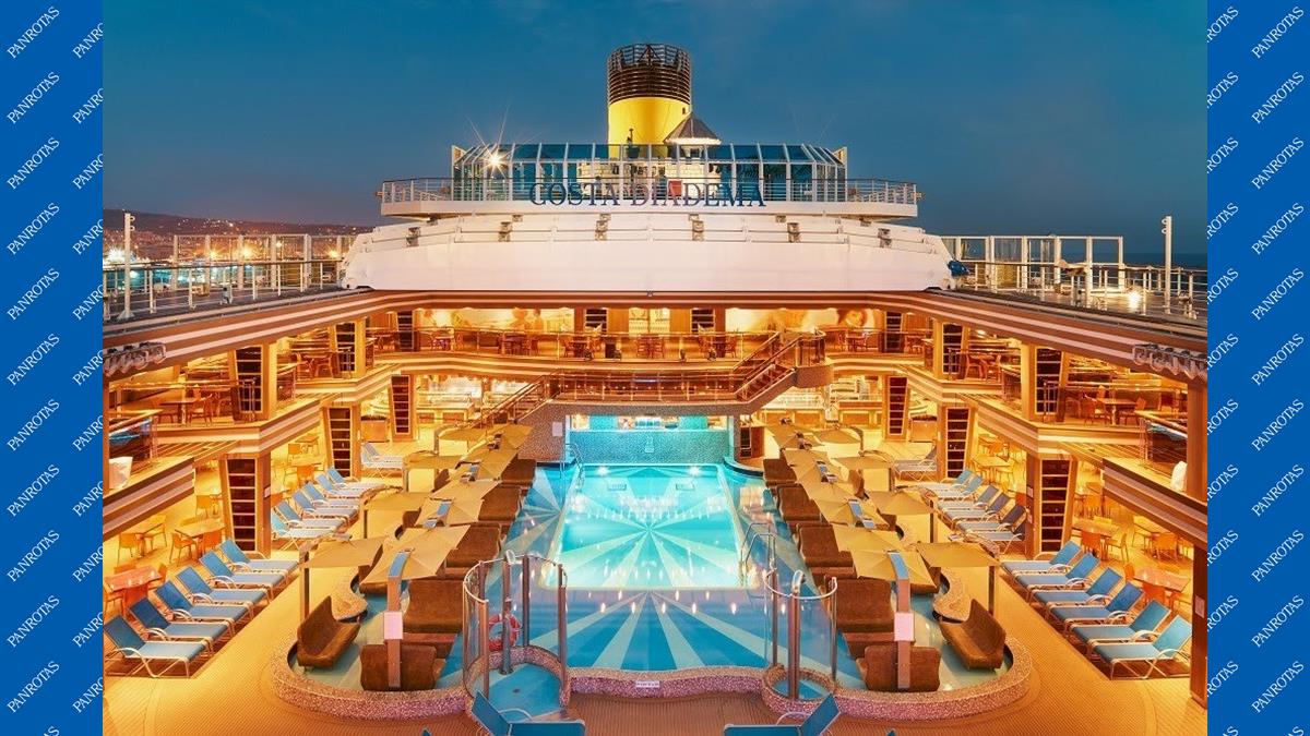 A primeira semana do Esquenta Blue Week oferece o benefício para os minicruzeiros durante a temporada brasileira 2025/2026. A bordo dos navios Costa Diadema e Costa Favolosa, o hóspede pode embarcar em Santos para cruzeiros de 3 e 4 noites. No Costa Diadema, há opções de roteiros de 3 noites, saindo no dia 5 de dezembro de 2025 e visitando a cidade de Itajaí, ou ainda minicruzeiros de 4 noites, partindo nos dias 01 e 14 de dezembro de 2025, com paradas em Ilhabela e Itajaí.