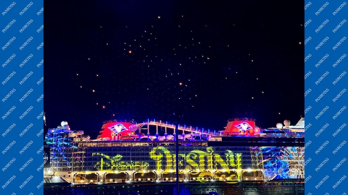 Em uma celebração digna do tema do navio, um show de drones e projeções nas cabines trouxe os personagens mais queridos dos universos Disney, Marvel e Pixar, como Pantera Negra, Hercules, Cruella de Vil, Malévola e Rei Leão, além de músicos ao vivo com as canções favoritas dos fãs.