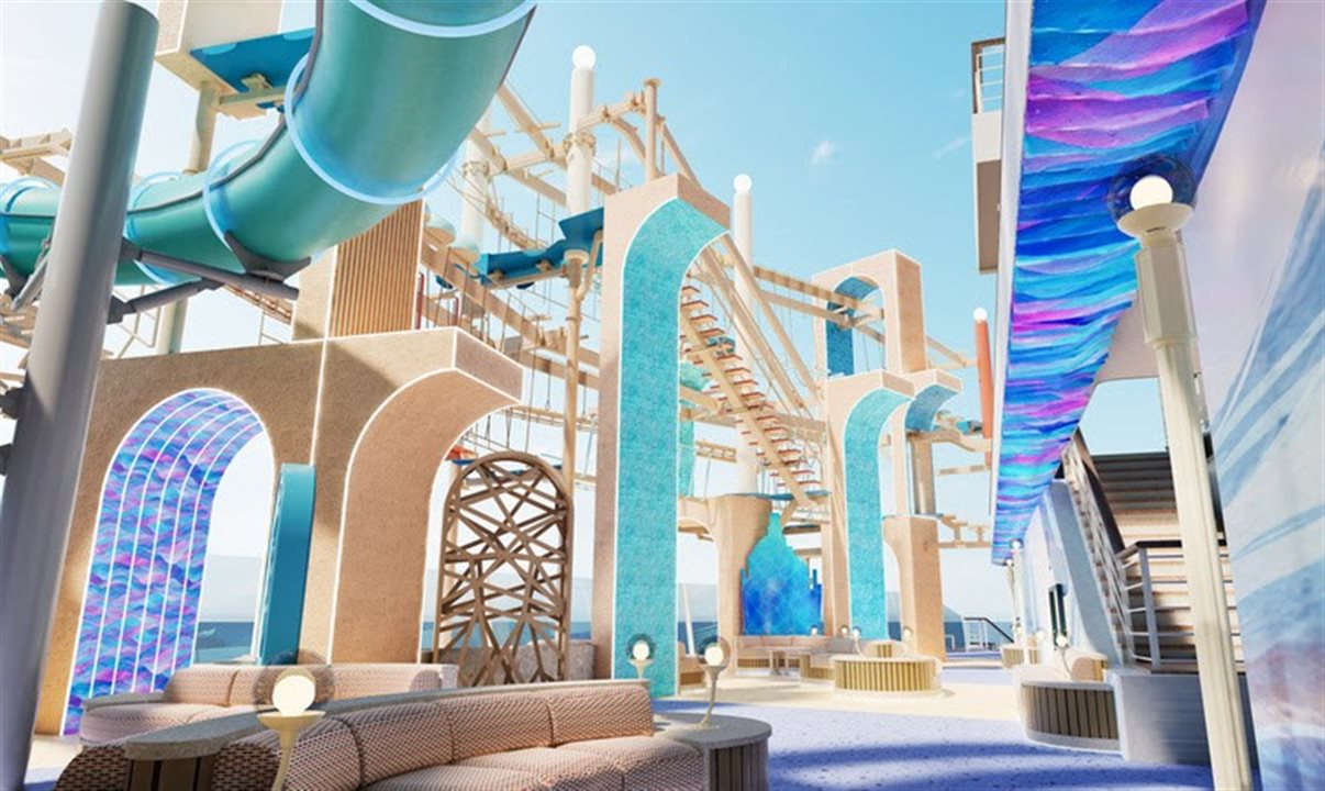 Além disso, o Ocean Boulevard contará com atividades dedicadas para crianças e adolescentes localizadas em ambos os lados da parte dianteira do navio. No lado de bombordo, o Adventure Alley foi projetado para crianças de 6 a 10 anos e oferece espaços estimulantes e túneis sinuosos em um cenário imaginativo de paisagem marítima com vista para o oceano; enquanto no lado de estibordo, o Teen Hangout oferece um refúgio exclusivo para adolescentes relaxarem, socializarem e registrarem memórias no painel de fotos com ondas e surfe. Por fim, para os hóspedes mais jovens, de 2 a 6 anos, o playground Little Explorer’s Cove está situado na proa e conta com uma casinha com dois escorregadores e muito mais.