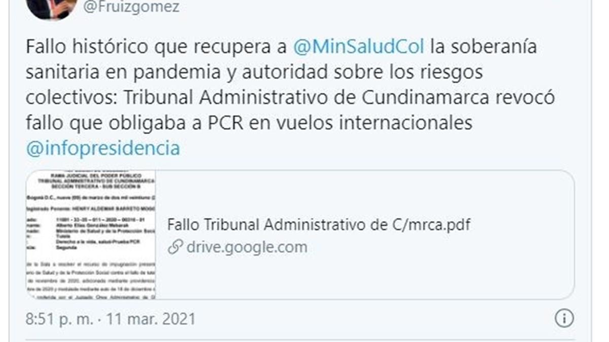 O Tribunal de Cundinamarca, na Colômbia, reverteu a decisão que exigia a realização de testes PCR negativo para viajantes internacionais que entrarem no país. Com isso, os exames não serão mais requisitos necessários para o ingresso na Colômbia.
