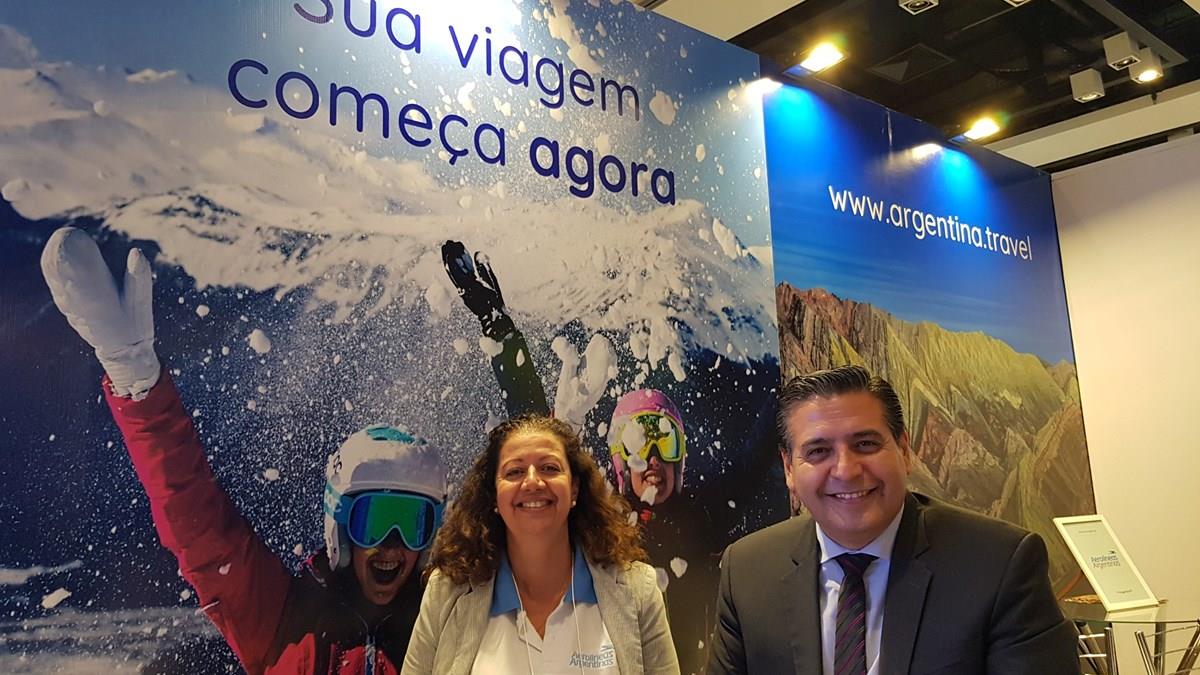 Rosángela da Cruz, da Aerolíneas Argentinas, e Ricardo Sosa, do Turismo da Argentina