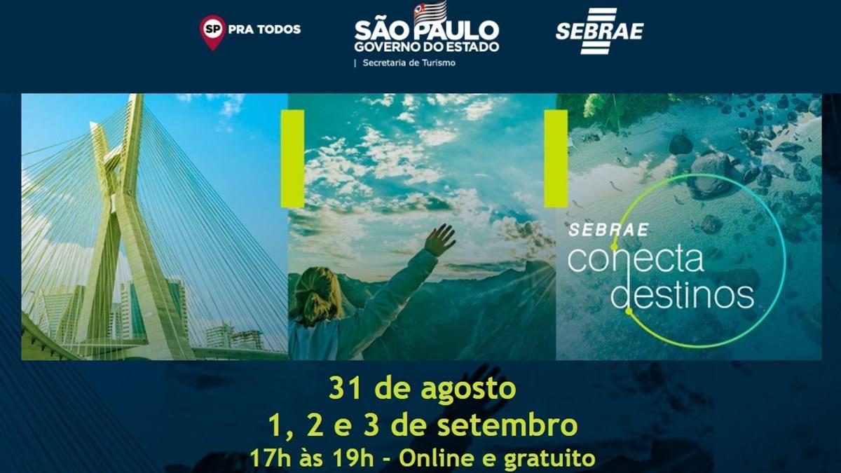Entre os dias 31 de agosto e 3 de setembro, o evento on-line Sebrae Conecta Destinos abordará conteúdos sobre o mercado, tendências para o setor de Turismo e boas práticas para servir de inspiração. O encontro é voltado para empresas do segmento, governanças dos destinos e interessados no tema. Serão quatro dias de transmissões para debater ideias e experiências do Turismo, de um dos setores mais afetados pela crise do novo coronavírus. As inscrições são gratuitas e podem ser feitas no link.