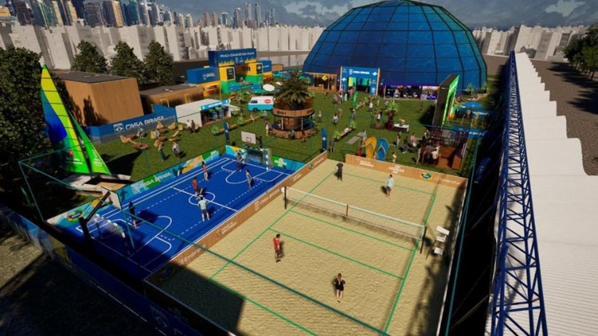 Os visitantes também terão acesso a uma parede de escalada, pista de skate, quadra de areia, parede instagramável com plantas brasileiras ao fundo e um túnel imersivo que, por meio de painéis, levará nossa brasilidade aos olhos do mundo.
