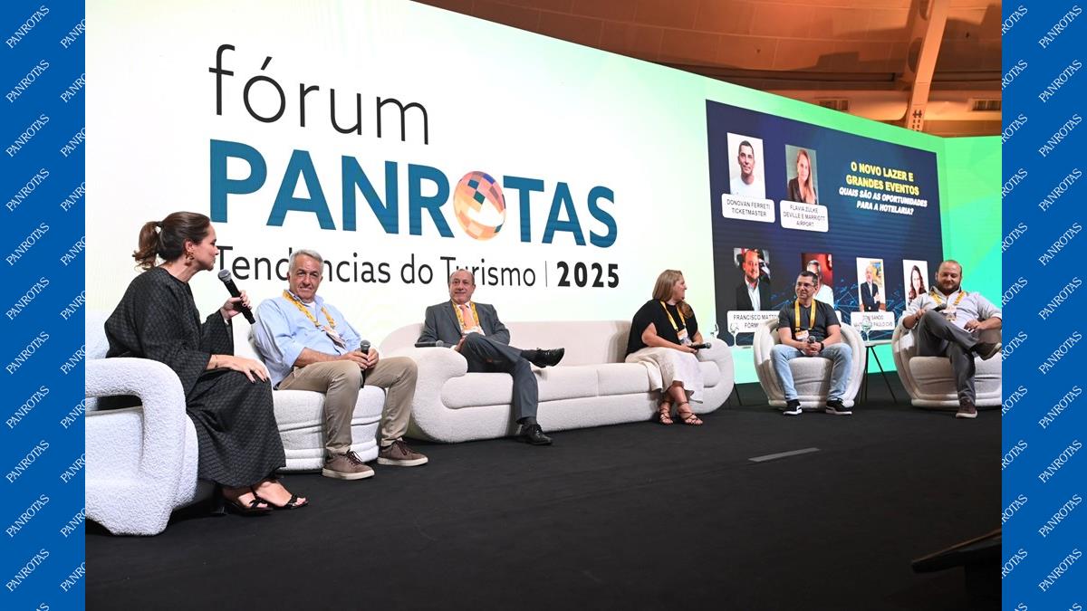 Além de abordar destinos, companhias aéreas e tecnologia, o Fórum PANROTAS 2025 também trouxe discussões sobre o futuro dos eventos. No painel mediado por Trícia Neves, da Mapie, Flavia Zülzke, do Hotéis Deville, Sylvio Ferraz, da BeFly, e Toni Sando, do Visite São Paulo CVB, juntaram-se a Donovan Ferreti, da Ticketmaster, e Francisco Mattos, da Fórmula 1, para compartilhar insights e tendências do setor de eventos.
