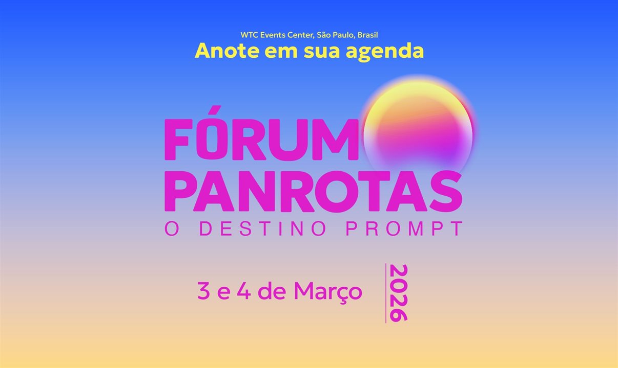O Fórum PANROTAS 2026 conta com o patrocínio da Abav-SP | Aviesp, Accor, Ancoradouro, Assist Card, Aviva, Beach Park, Civitatis, ClickBus, Copastur, Coris, Decolar, Disney Cruise Line, Disneyland Resort Califórnia, Walt Disney World Resort Flórida, Elo, Embratur, Experience Kissimmee, EZLink, FundturMS, Gol AF KLM, Grupo Bancorbrás, Grupo R1, Grupo Wish, GTA, Latam Delta Airlines, Kaluah, Mondiale, Movida, Omnibees, República Dominicana, Sabre, Sheraton São Paulo WTC Hotel, SEMTUR Maceió, Setur Alagoas, Secretaria de Turismo do Estado do Espírito Santo, SMTUR São Paulo, SunCoastUSA, Tes Cenografia, Tyller e Visite São Paulo CVB