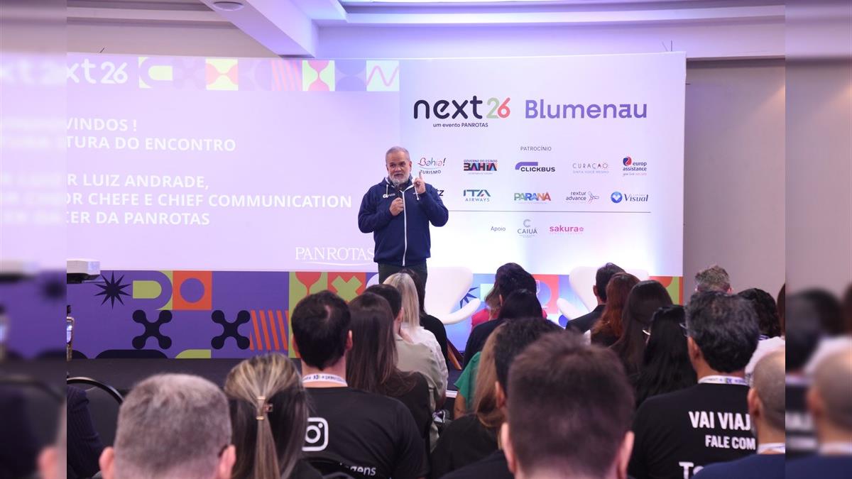 BLUMENAU (SC) – Teve início na manhã de hoje (28), no Hotel Caiuá, em Blumenau, a primeira etapa do PANROTAS Next deste ano de 2026. Logo na abertura do evento, o editor-chefe e CCO da PANROTAS, Artur Andrade, destacou os conteúdos que serão apresentados ao longo do evento.