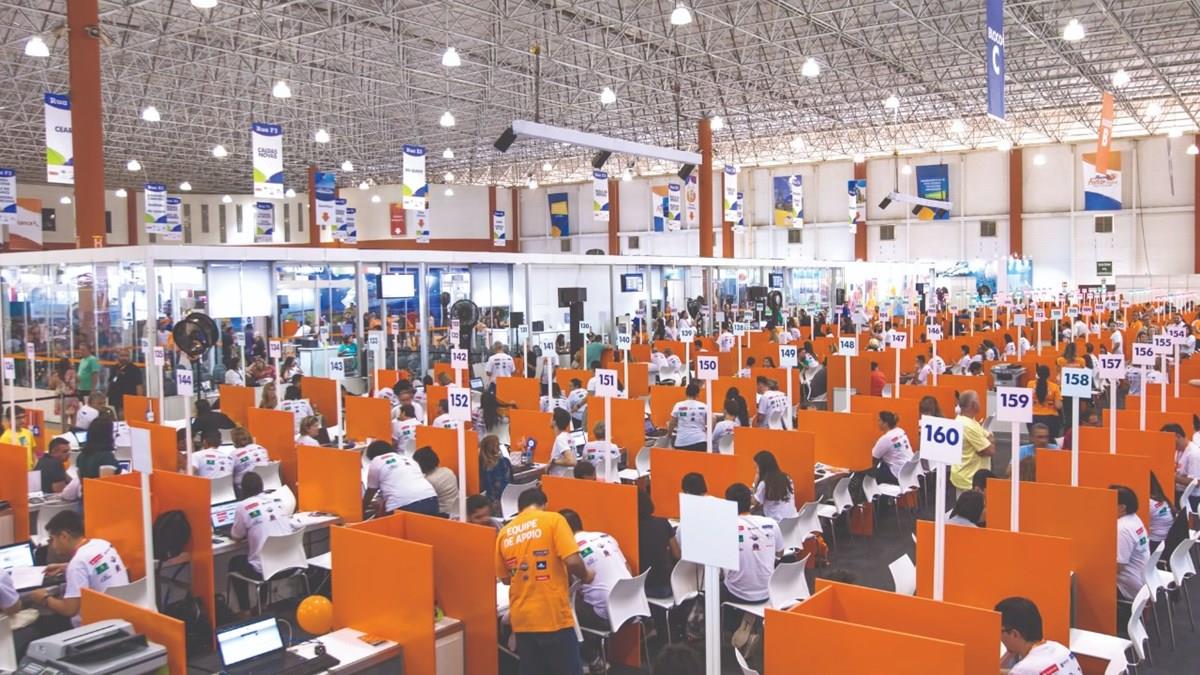 Agentes de viagens atendem clientes no Hiper Feirão de Viagens Flytour