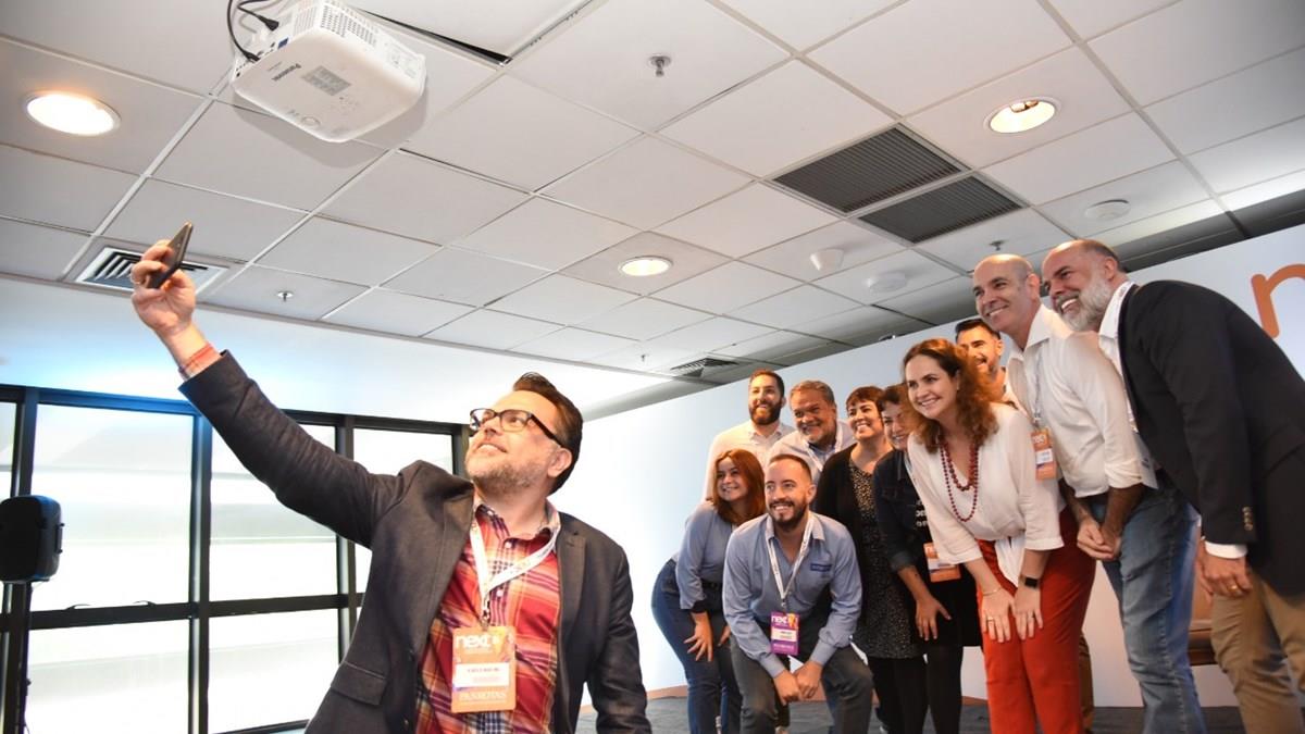 Alberto Martins,da B4TComm, faz selfie com participantes do Next Rio, no Hilton Copacabana