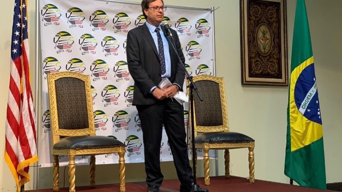 Para uma plateia de cerca de trezentas pessoas, entre brasileiros e americanos, Machado Neto falou do entusiasmo do novo governo em priorizar o Turismo
