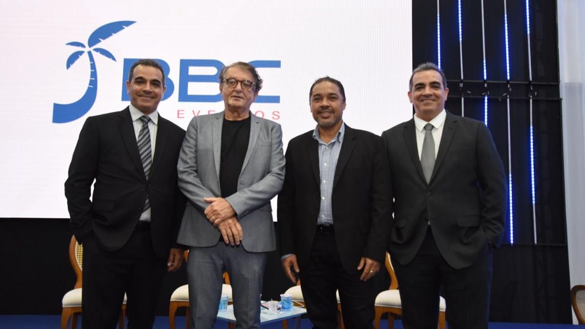 Arialdo Pinho, secretário de Turismo de Fortaleza, com Breno Mesquita, Claudio Junior e Bruno Mesquita, sócios e organizadores da Brazil Travel Market
