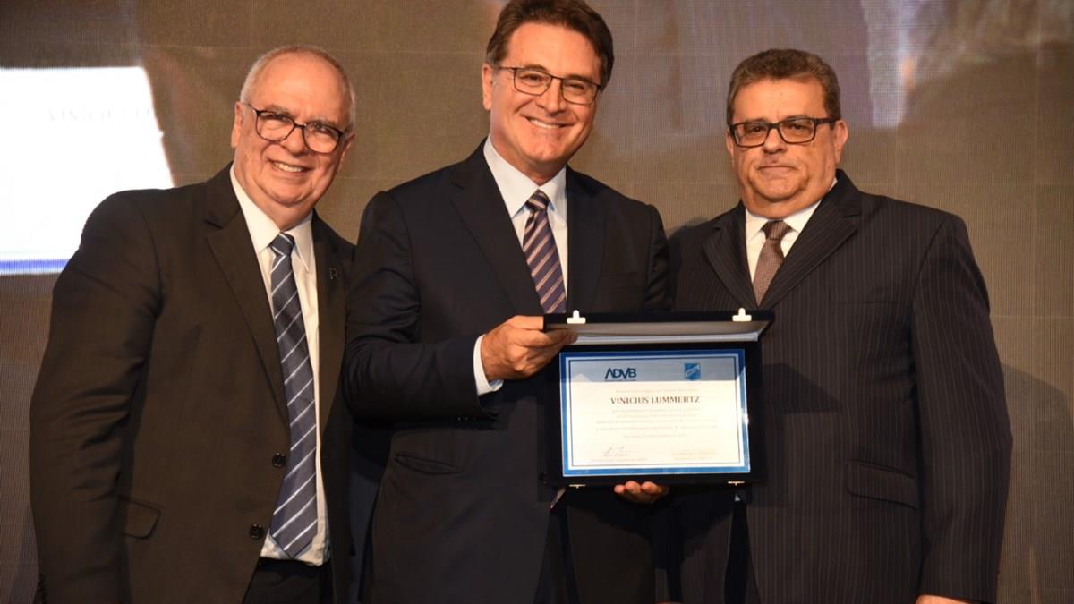 São Paulo foi homenageada como destino hors concours. Na foto, o secretário de Turismo do Estado de São Paulo, Vinicius Lummertz, entre Aristides de La Plata Cury e Latif Abrão Jr, da ADVB