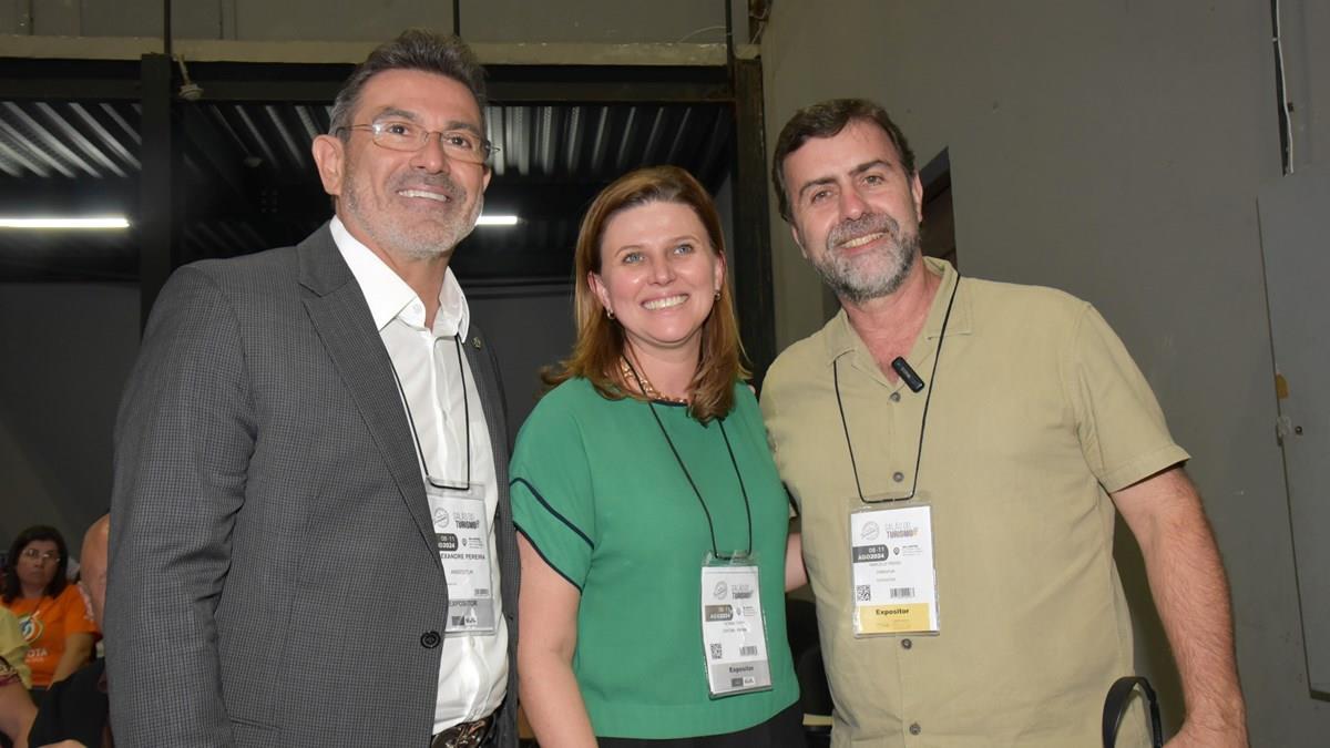 O presidente da Embratur, Marcelo Freixo, o diretor de Marketing Internacional, Negócios e Sustentabilidade da Embratur, Bruno Reis, e o gerente de Inteligência de Dados da Embratur, Fábio Montanheiro, participaram da reunião da Associação Nacional de Secretários e Dirigentes de Turismo (Anseditur).