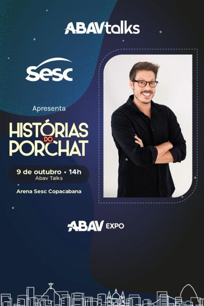 Com apoio do Sesc, o Histórias do Porchat será apenas mais uma atração do Abav Talks, espaço feito para os participantes da feira explorarem ideias, tendências e práticas transformadoras em palestras com grandes especialistas.